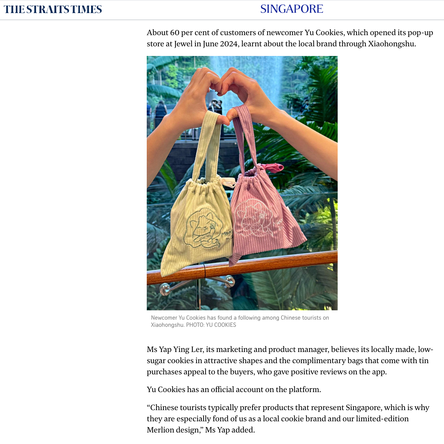 YU Cookies Featured by The Straits Times on 20 Oct 2024.