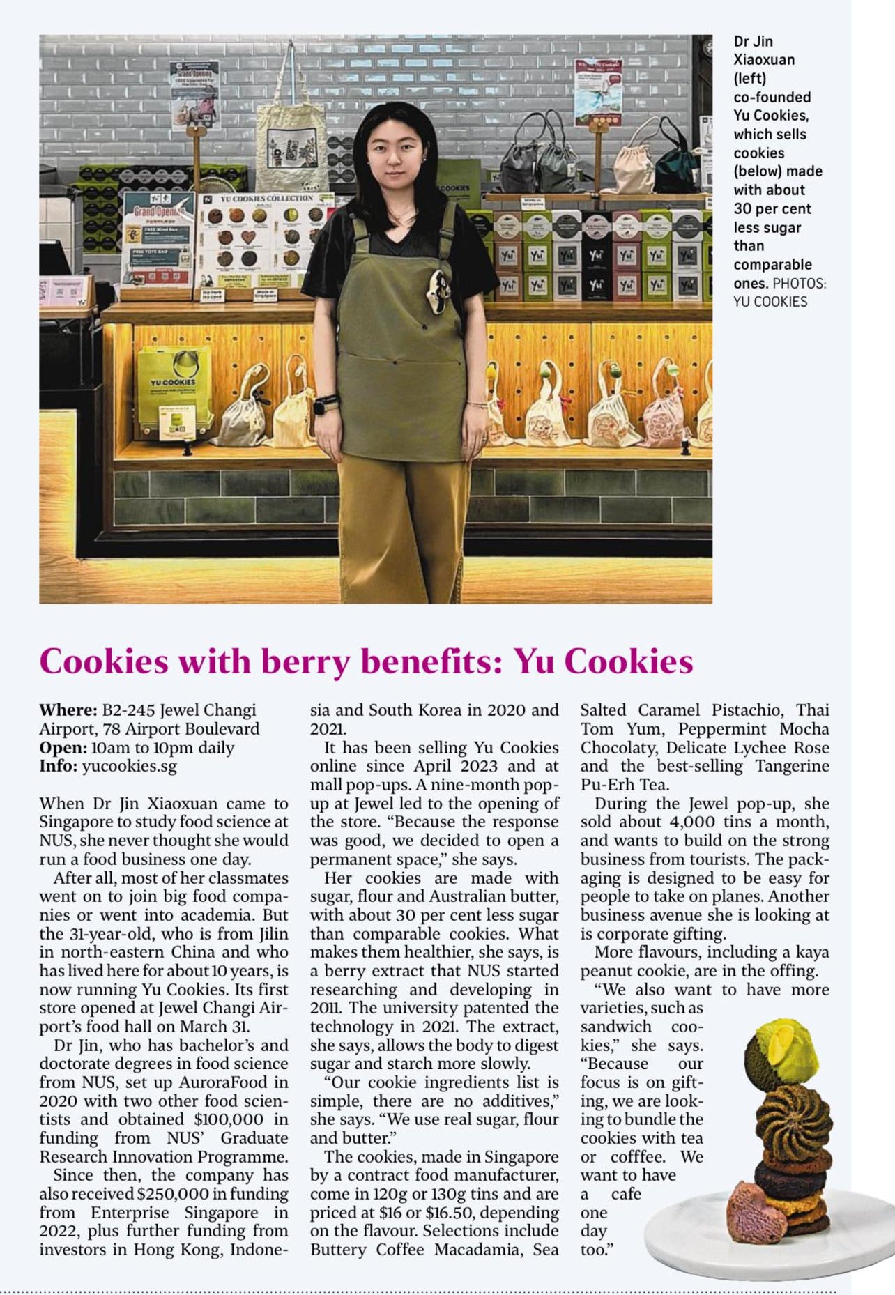 YU Cookies Featured by The Straits Times on 19 Apr 2025.